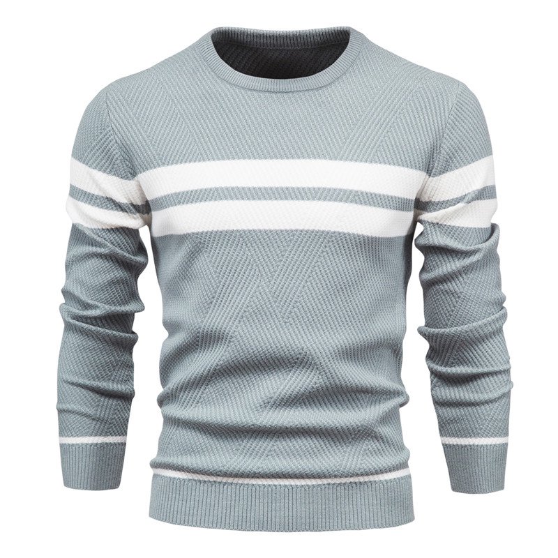 日系ストライプメンズクルーネックジャンパー
