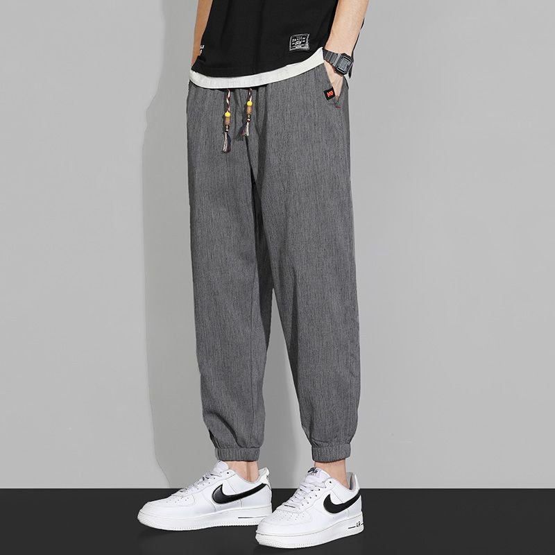 メンズ接触冷感リネン製カジュアルパンツ